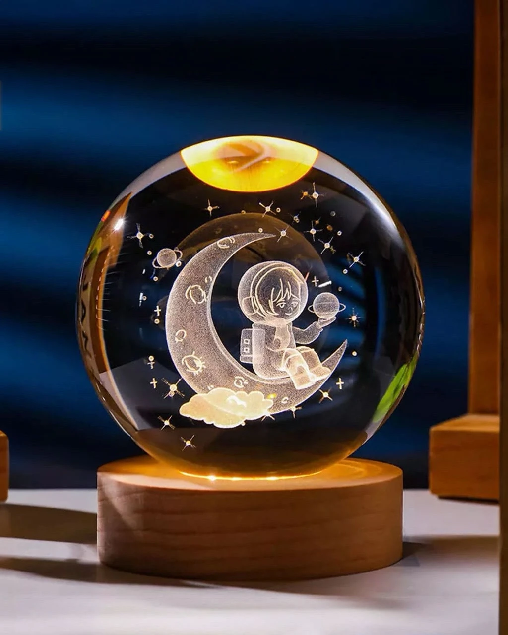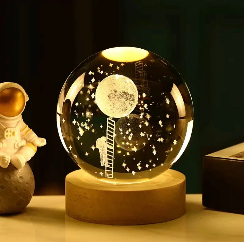 *Material premium: el soporte de la lámpara está hecho de madera maciza y la esfera es de cristal, de excelente calidad. Es ópticamente transparente, lo que lo hace perfecto para mostrar imágenes grabadas en 3D.