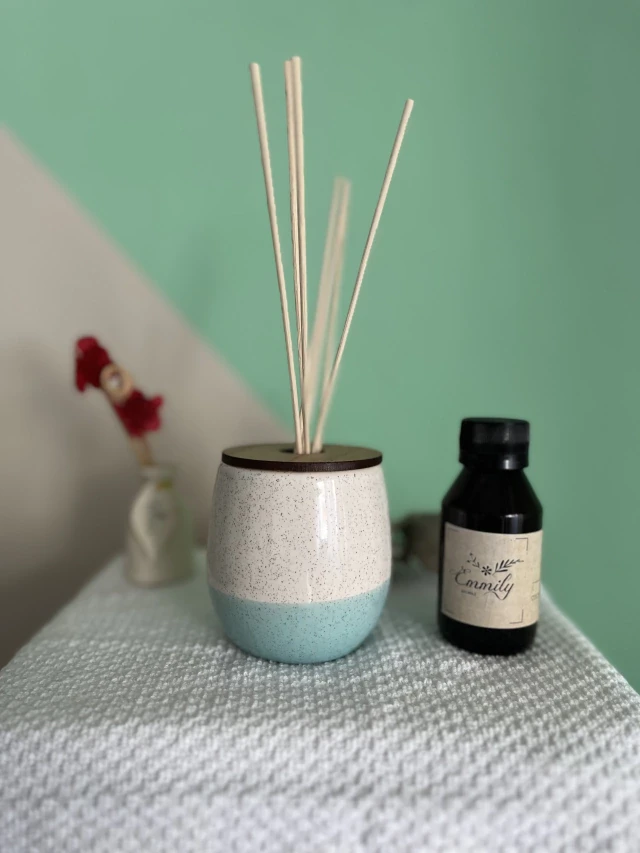 DIFUSOR EN CUENCO DE CERAMICA + VARILLAS + PERFUME 100ML